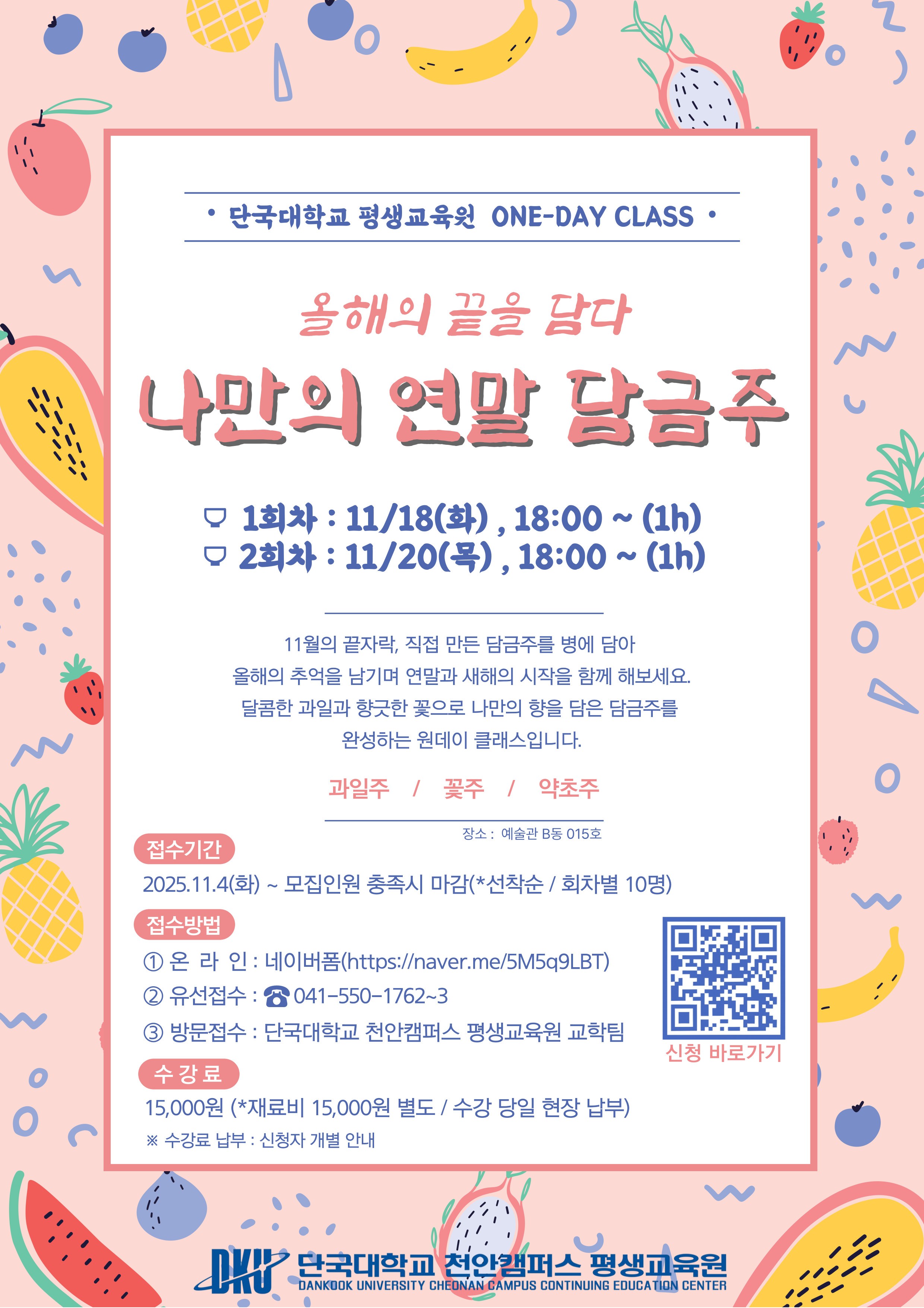 | [평생교육원]2025학년도 2학기 원데이클래스 - 올해의 끝을 담다, 나만의 연말 담금주 | |