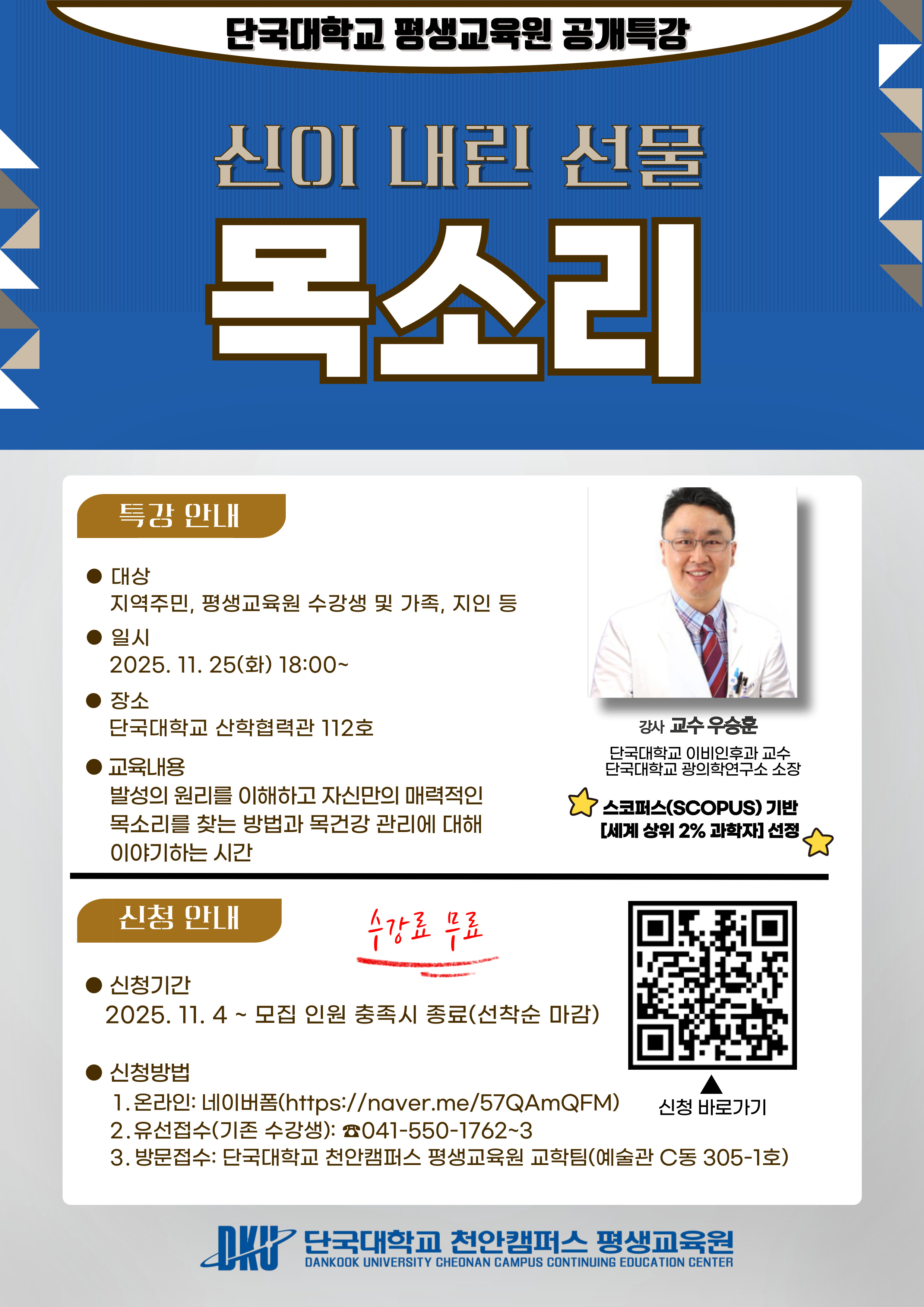 | [평생교육원]2025학년도 2학기 ‘신이 내린 선물 - 목소리’ 공개 특강 안내 | |