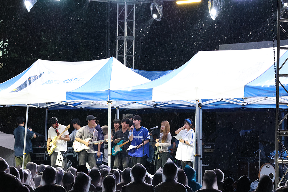 △ 비가 오는 궂은 날씨에도 공연을 진행한 아티스트 '잔나비'와 공연장을 가득 메운 재학생들