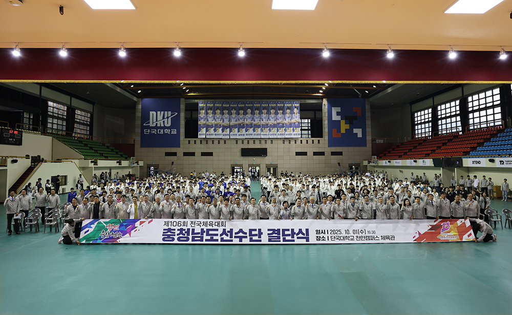 지난 1일(수) 오후 4시 천안캠퍼스 체육관에서는 오는 17일부터 23일까지 부산광역시에서 열리는 ‘제106회 전국체육대회’의 필승을 다짐하는 결단식이 열렸다. 결단식에는 백동헌 천안부총장, 김태흠 충남도지사, 김지철 충남교육감과 선수단 등 500여명이 참석해 자리를 빛냈다.